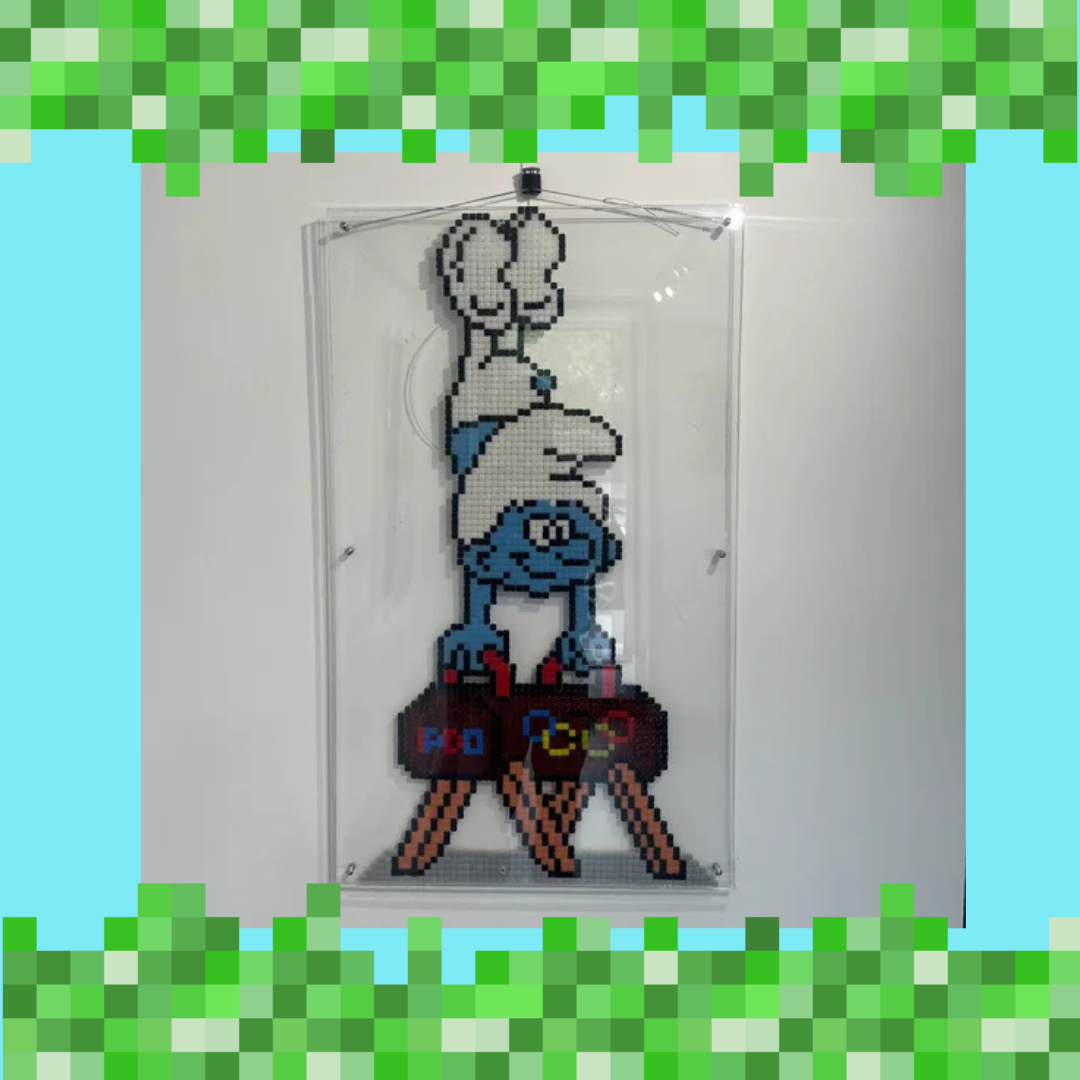 Mosaïque 92x51 cm composée de carreaux micro pâtes de verre Ottoman 0,8x0,8 cm, exemplaire unique présenté entre 2 plexiglas pour les JOP Paris 2024