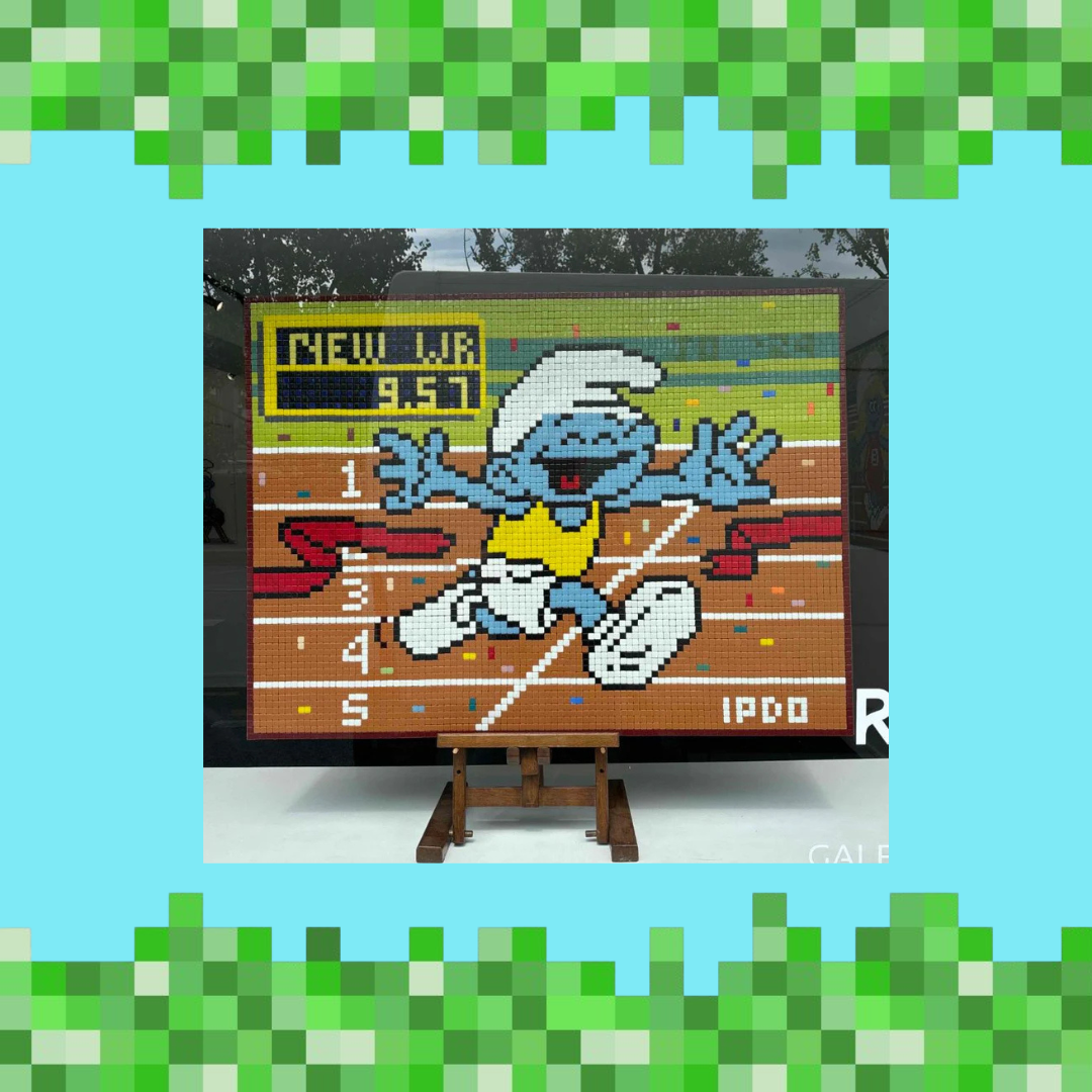 Mosaïque sur support bois Valchromat noir, 113x83 cm, composée de carreaux de mini pâtes de verre Espagnol 1,2x1,2 cm, exemplaire unique réalisé pour les JOP Paris 2024